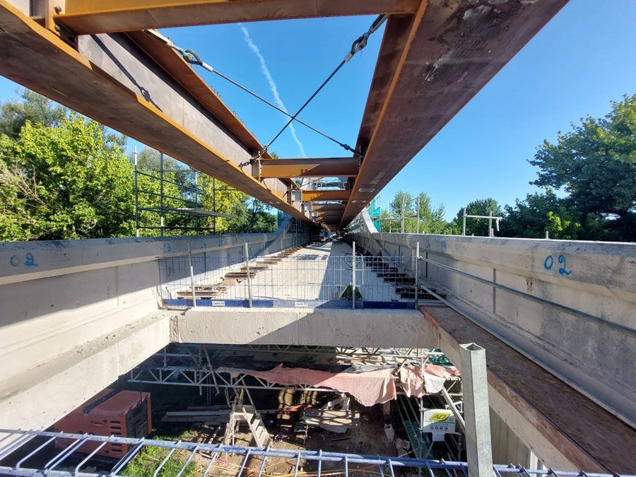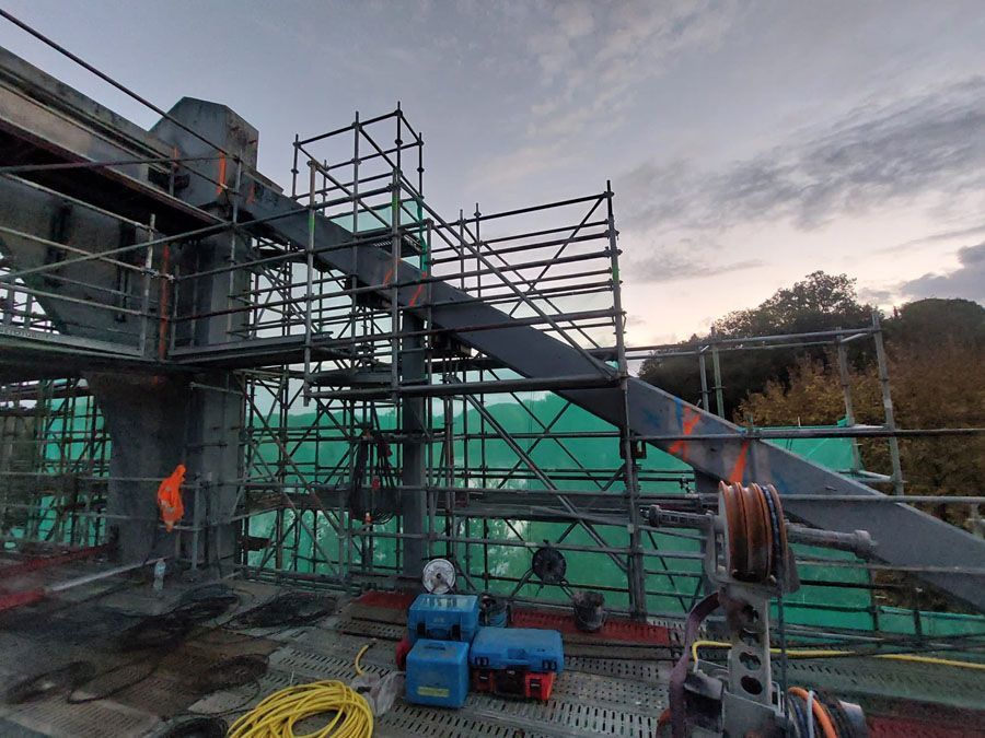 Réalisation de 106 carottages Ø 500 mm dans deux plateformes circulaires en béton rosé ; les perçages ont été rebouchés par des pièces concaves et convexes ainsi que la réalisation de 600 carottages Ø 130 mm dans l'enrobé de l'ouvrage.